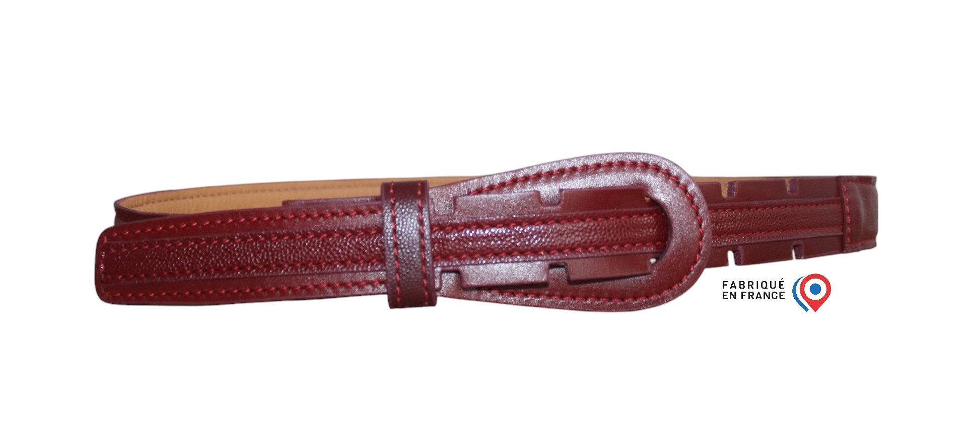 La ceinture créateur chic en cuir bordeaux est le complément parfait pour parfaire votre look.