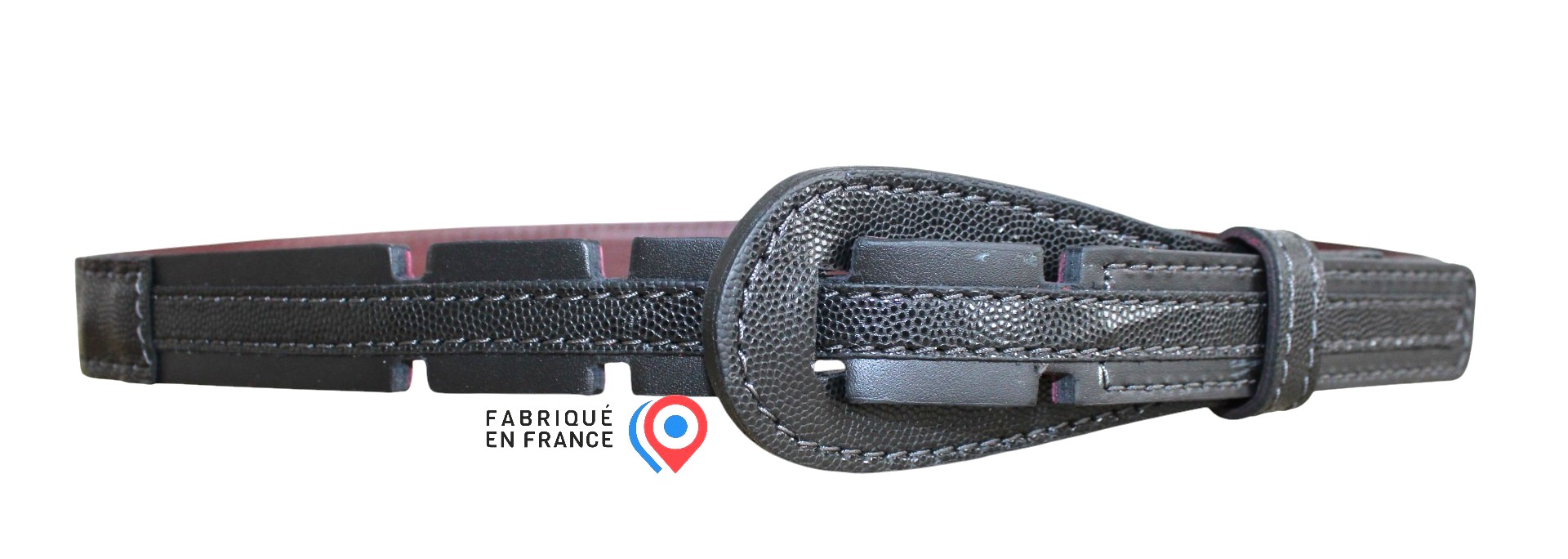 Notre ceinture design avec boucle en cuir est un choix parfait pour les femmes soucieuses de leur style. Sa largeur de 25mm ajoute une dimension élégante à n’importe quelle tenue. Tout en soulignant ainsi la taille de manière flatteuse. Parfaite sur une robe, une tunique ou bien sur un pantalon.